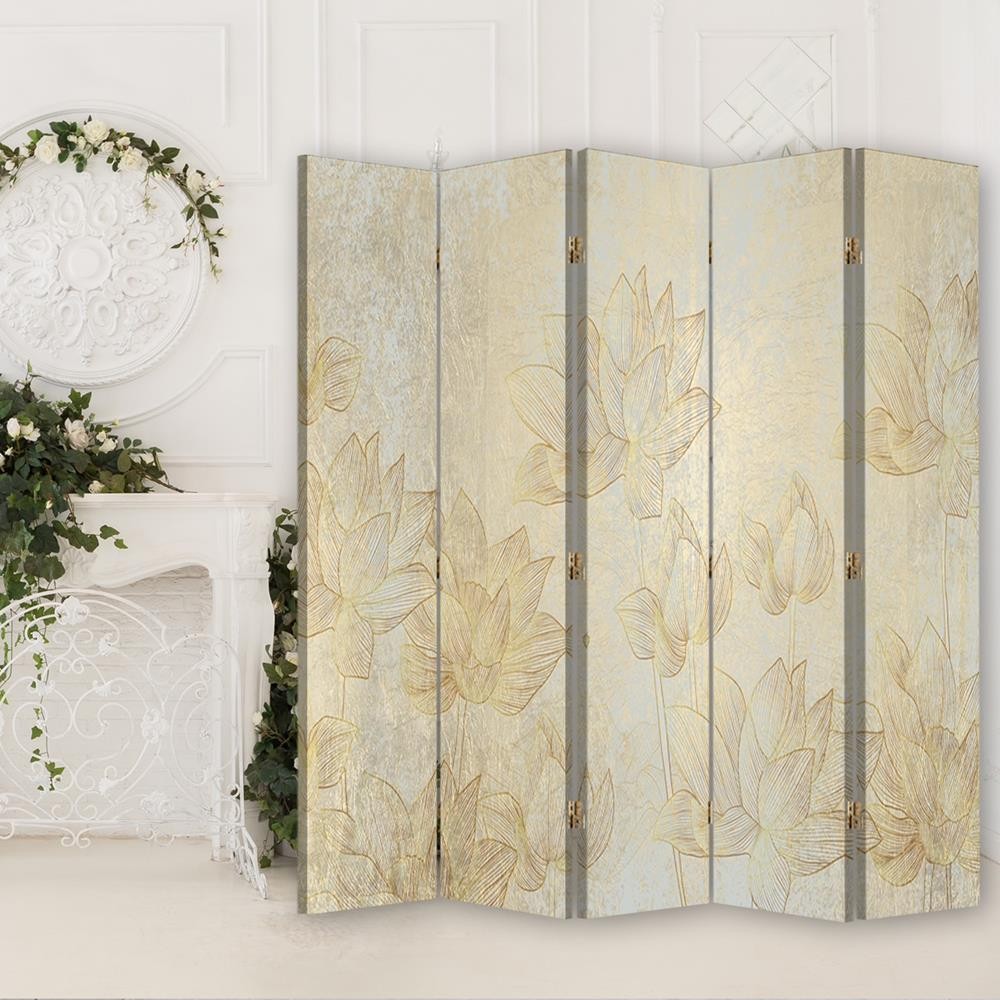 5-ių Dalių Kambario Pertvara Auksinės Gėlės
