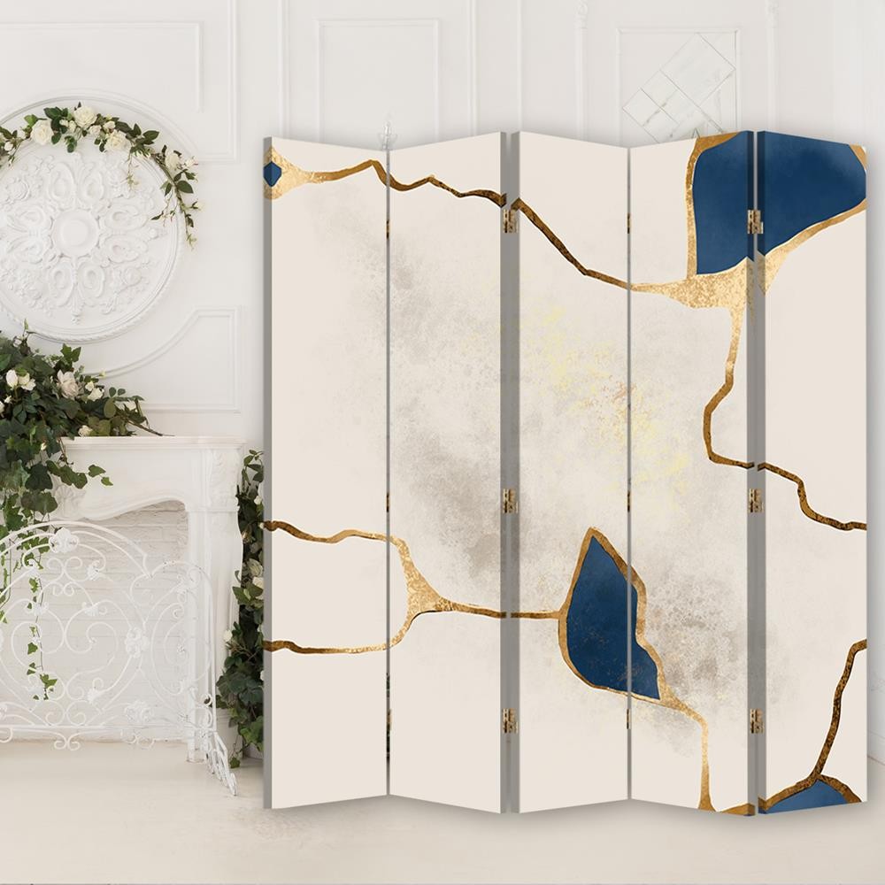 5-ių Dalių Kambario Pertvara Blue-Golden