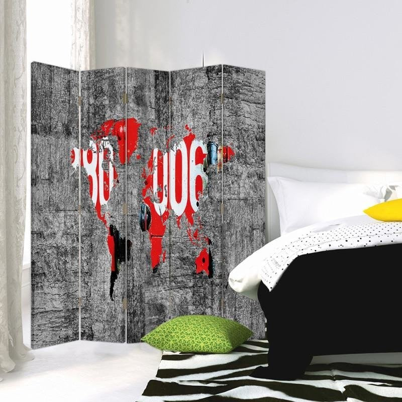 5-ių Dalių Kambario Pertvara Minimalistinis Pasaulio Žemėlapis