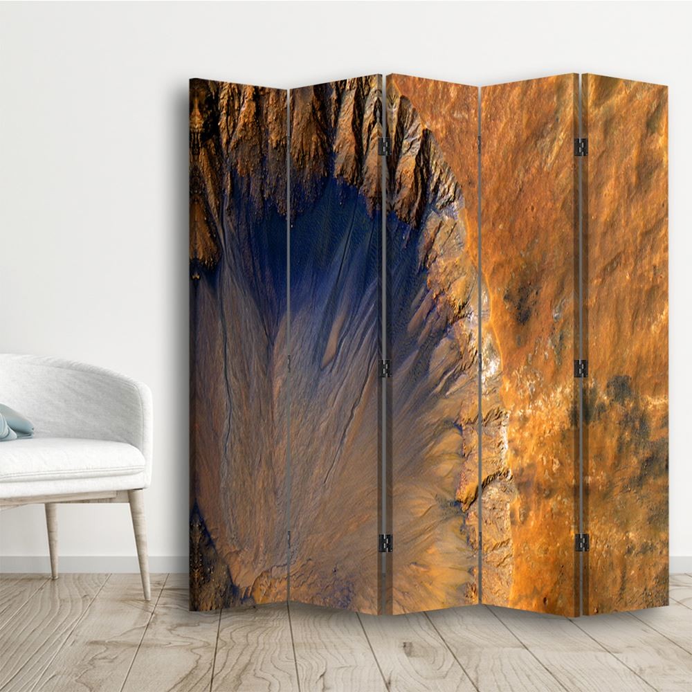 Spauda yra iš abiejų pusių ir kraštų, todėl sukuriamas subtilus, išraiškingai atrodantis veidrodinis efektas. Sulenkta širma užima labai mažai vietos, todėl ją paprasta sandėliuoti, kai ji nėra reikalinga. Dėl naujoviško gamybos metodo mūsų kambario pertvaros turi puikiai išlygintus kraštus be maskavimo juostų, o plonos metalinės kabės tvirtinamos tolygiai ir puikiai įtempia drobę. Visi dizainai yra spausdinami premium kokybės, saugiais dažais, todėl mūsų širmos yra ne tik kokybiškos bei ilgaamžės, bet ir išskirtinai išraiškingos!