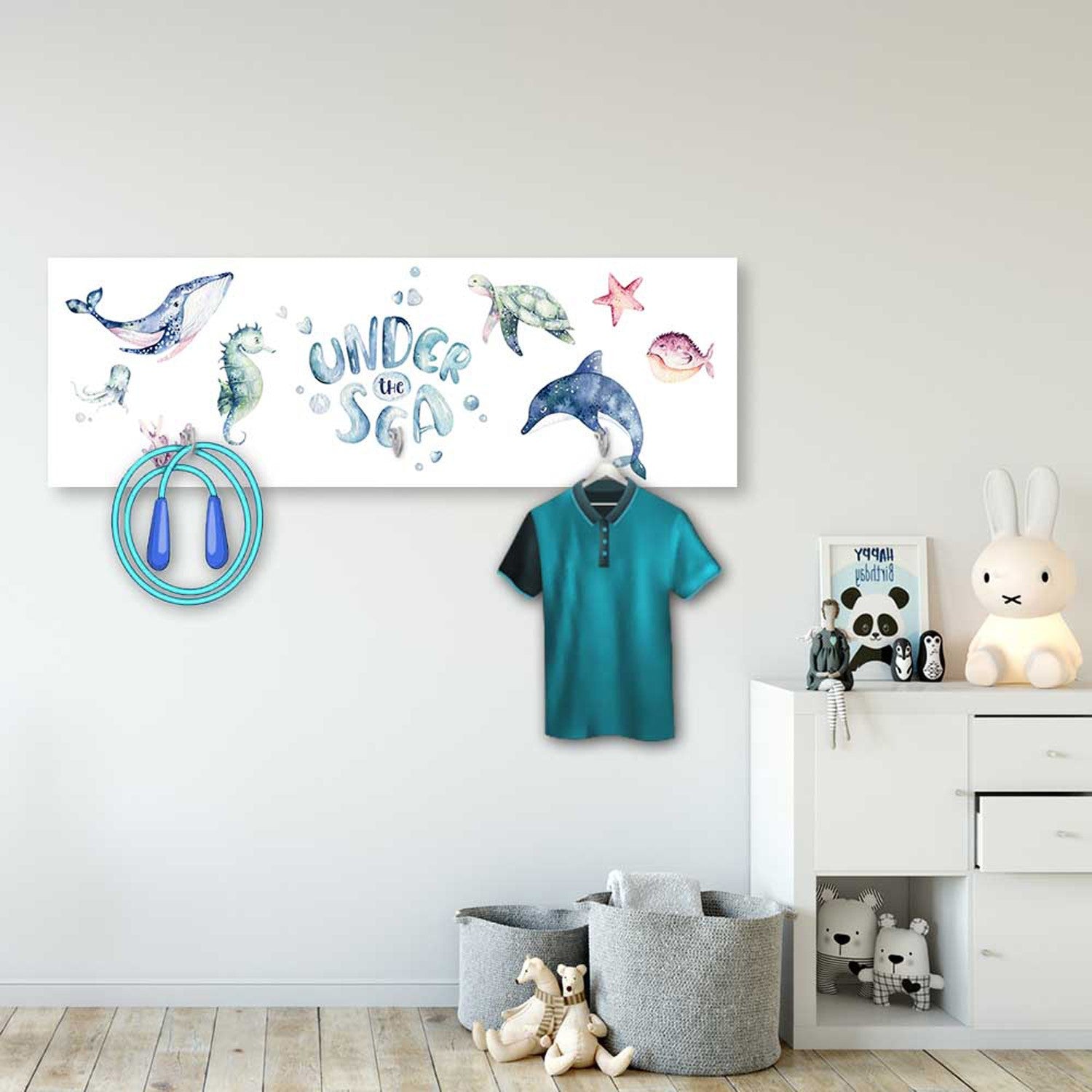 Nugarinė kabyklos dakis yra iš 1,5 cm storio MDF karkaso, kuris sukuria įdomų vizualinį 3D efektą. Grafika spausdinama ant 200 gsm atlasinio popieriaus ir klijuojama ant 3 mm storio HDF plokštės. Spausdinant naudojame tik saugius ekologiškus dažus.