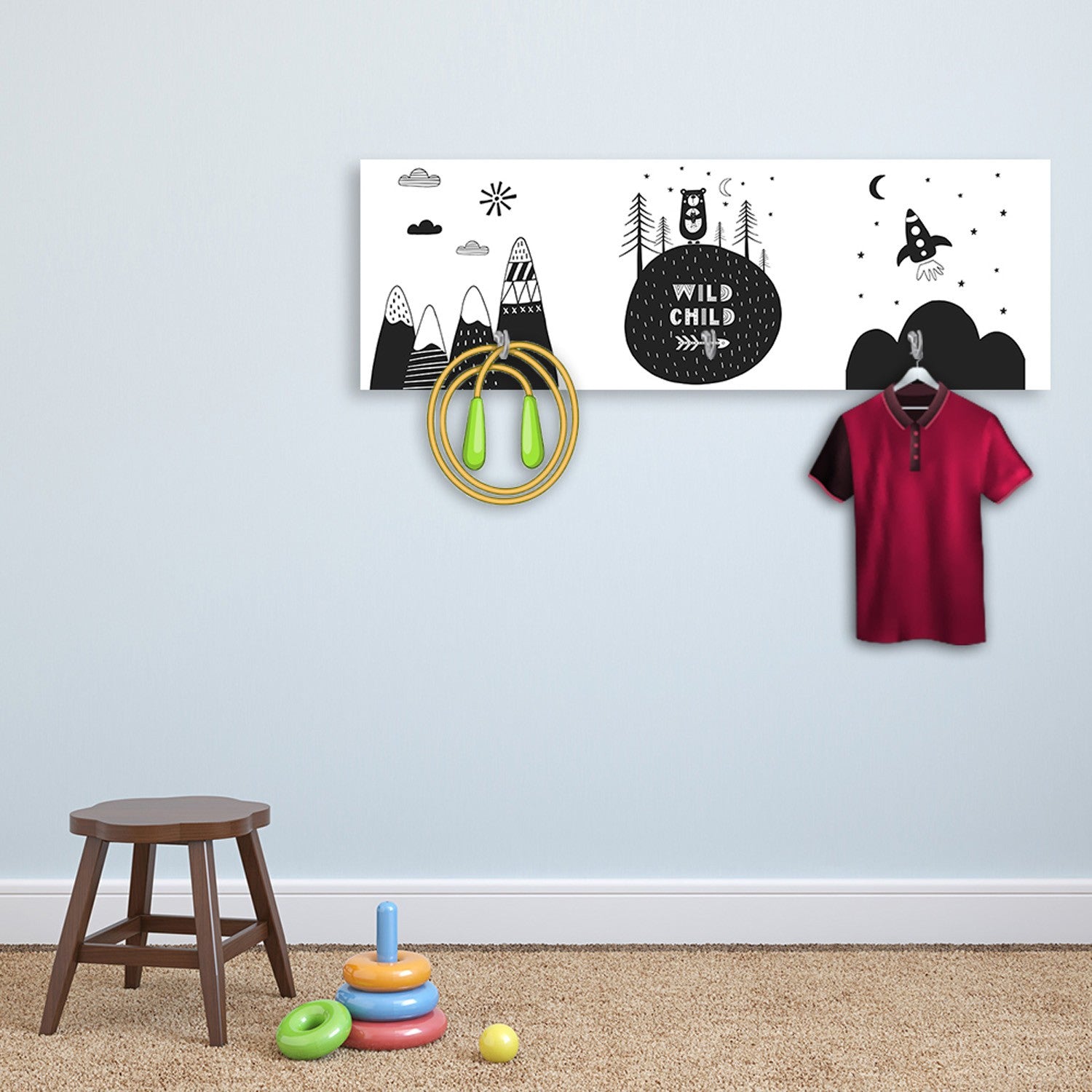 Nugarinė kabyklos dakis yra iš 1,5 cm storio MDF karkaso, kuris sukuria įdomų vizualinį 3D efektą. Grafika spausdinama ant 200 gsm atlasinio popieriaus ir klijuojama ant 3 mm storio HDF plokštės. Spausdinant naudojame tik saugius ekologiškus dažus.