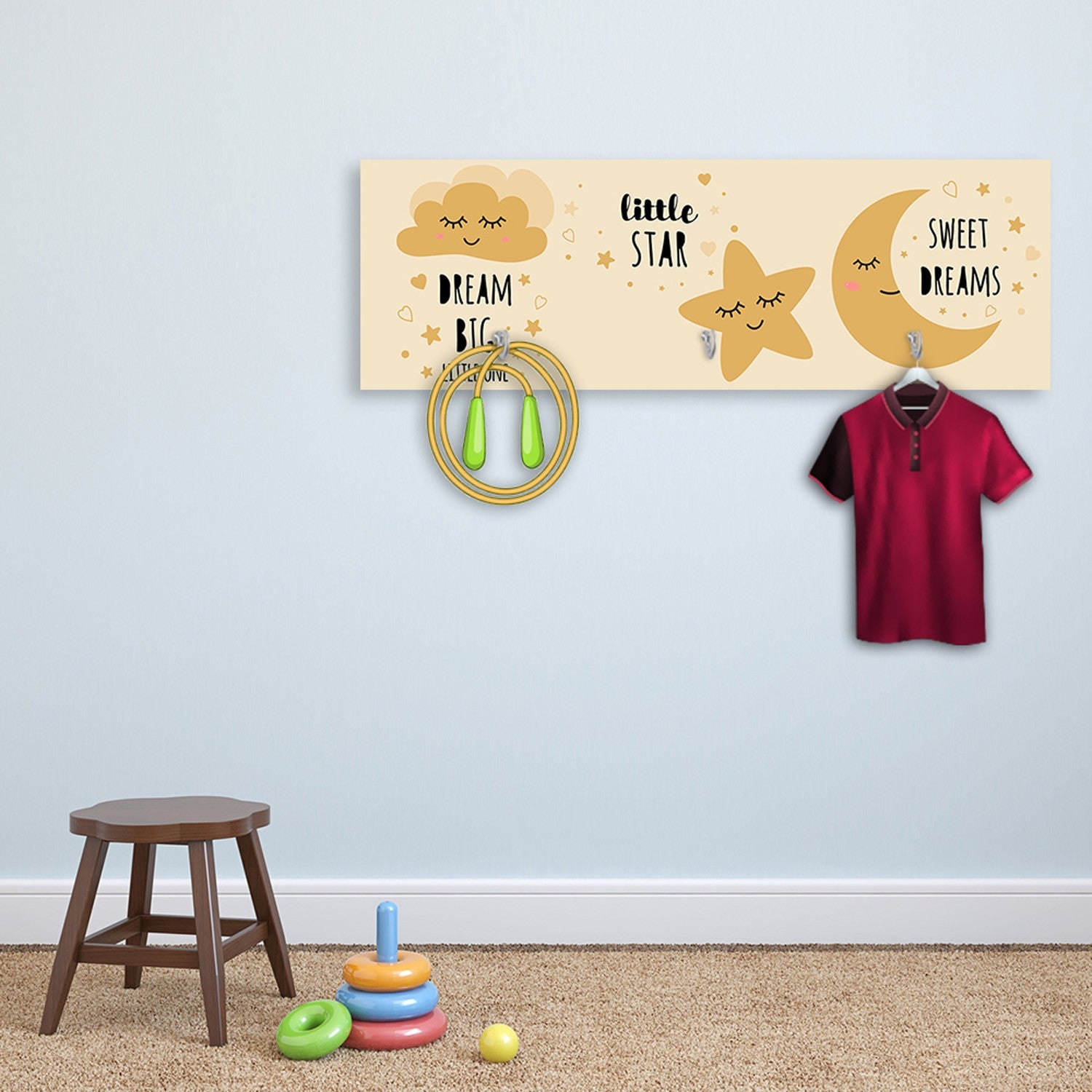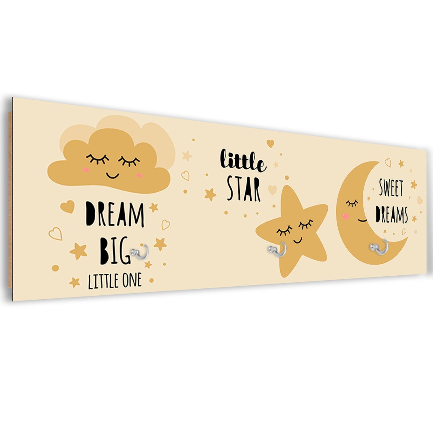 Nugarinė kabyklos dakis yra iš 1,5 cm storio MDF karkaso, kuris sukuria įdomų vizualinį 3D efektą. Grafika spausdinama ant 200 gsm atlasinio popieriaus ir klijuojama ant 3 mm storio HDF plokštės. Spausdinant naudojame tik saugius ekologiškus dažus.
