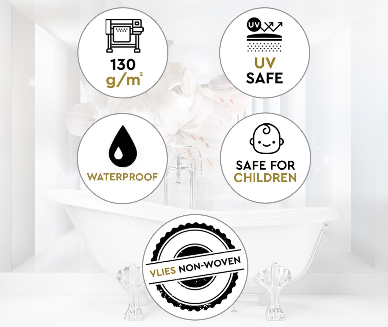 Flizelin 130g/m2, premium kokybės fototapetai, atspausdinti naujos kartos spausdintuvais su elastingu rašalu, kuris užtikrina aiškias, sodrias spalvas ir tikslų jų atkūrimą. Spausdinimui naudojami bekvapiai, 100% saugūs rašalai (UV gelis).