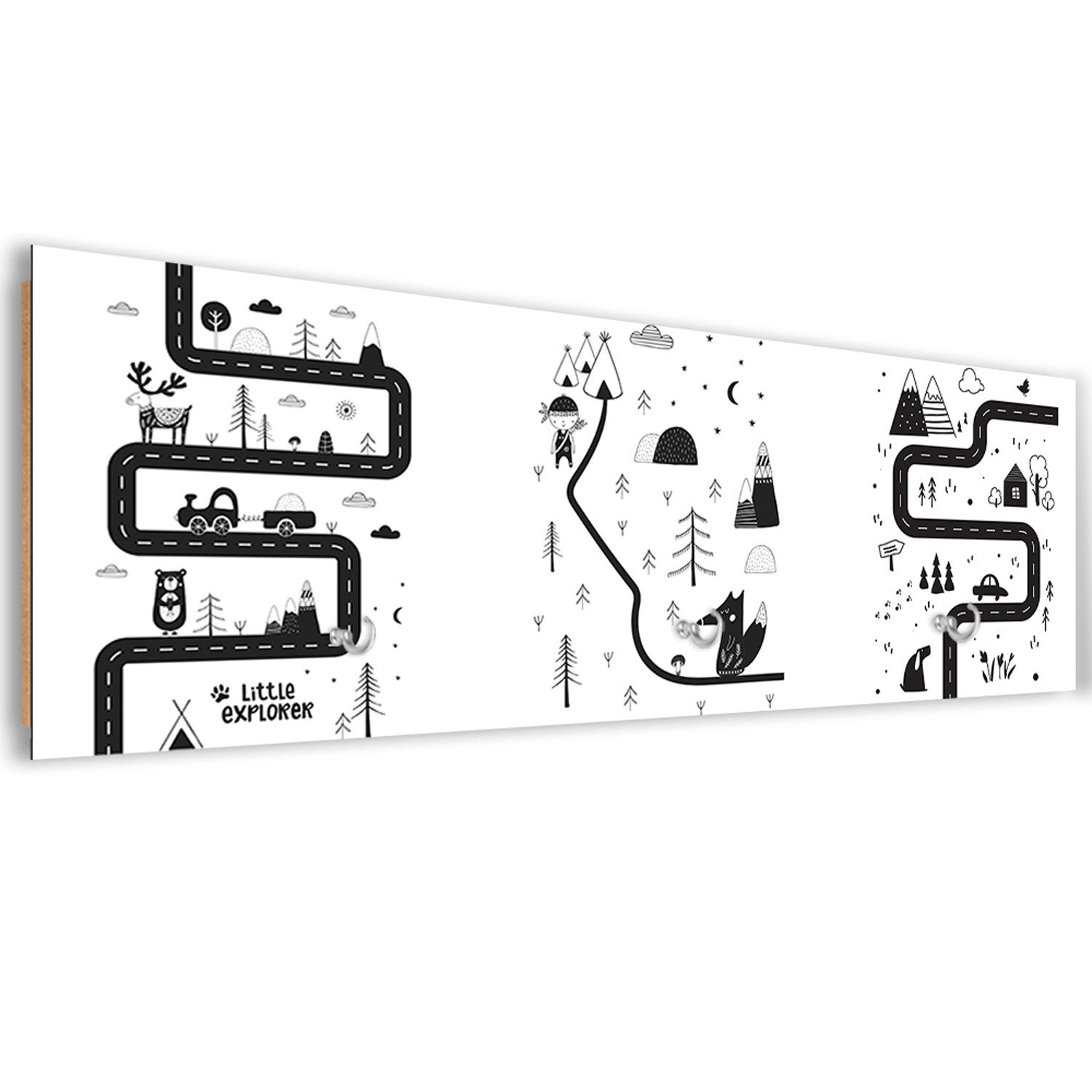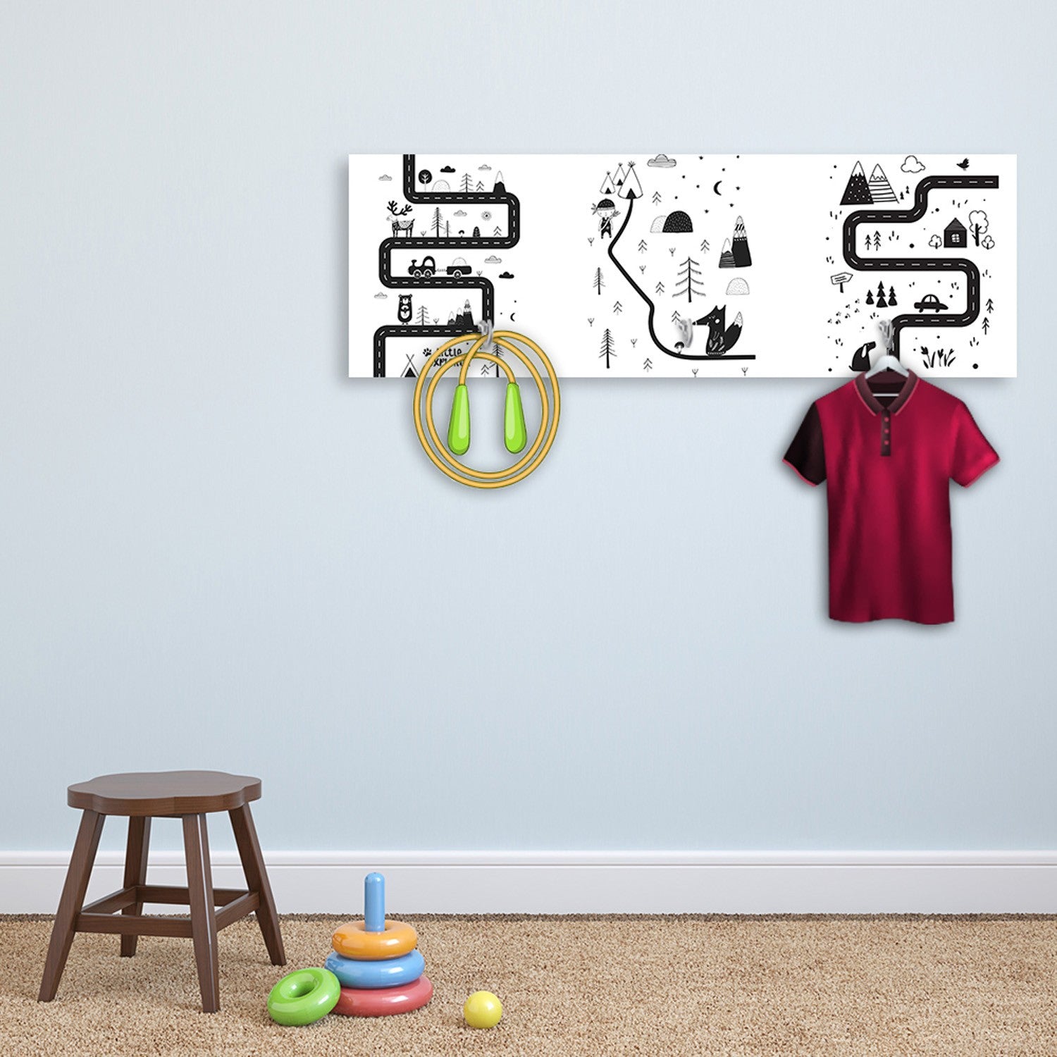 Nugarinė kabyklos dakis yra iš 1,5 cm storio MDF karkaso, kuris sukuria įdomų vizualinį 3D efektą. Grafika spausdinama ant 200 gsm atlasinio popieriaus ir klijuojama ant 3 mm storio HDF plokštės. Spausdinant naudojame tik saugius ekologiškus dažus.